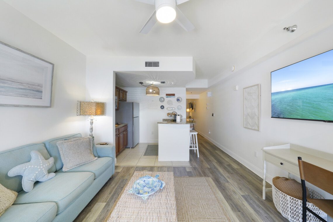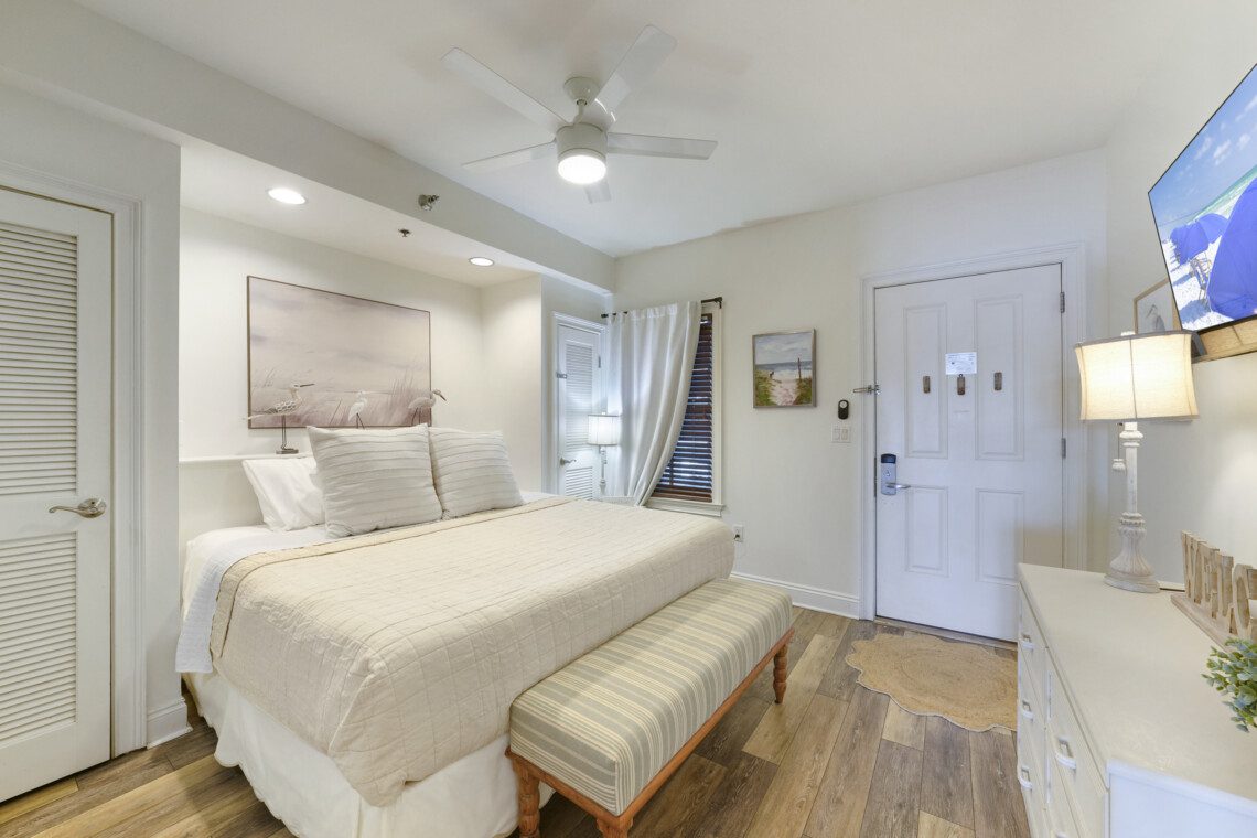 Welcome to Lolli-Pop Inn (Unit 212), your cozy coastal escape at the edge of West PCB near 30A! This bright and welcoming studio is located on the second floor of Carillon Beach Inn and features relaxing lake views and easy access to community amenities. Inside, you’ll find a comfortable living area with sleeping space for up to 4 guests (king bed + sleeper sofa). Two beach chairs and umbrella are included for each reservation. Enjoy everything Carillon Beach Resort has to offer!