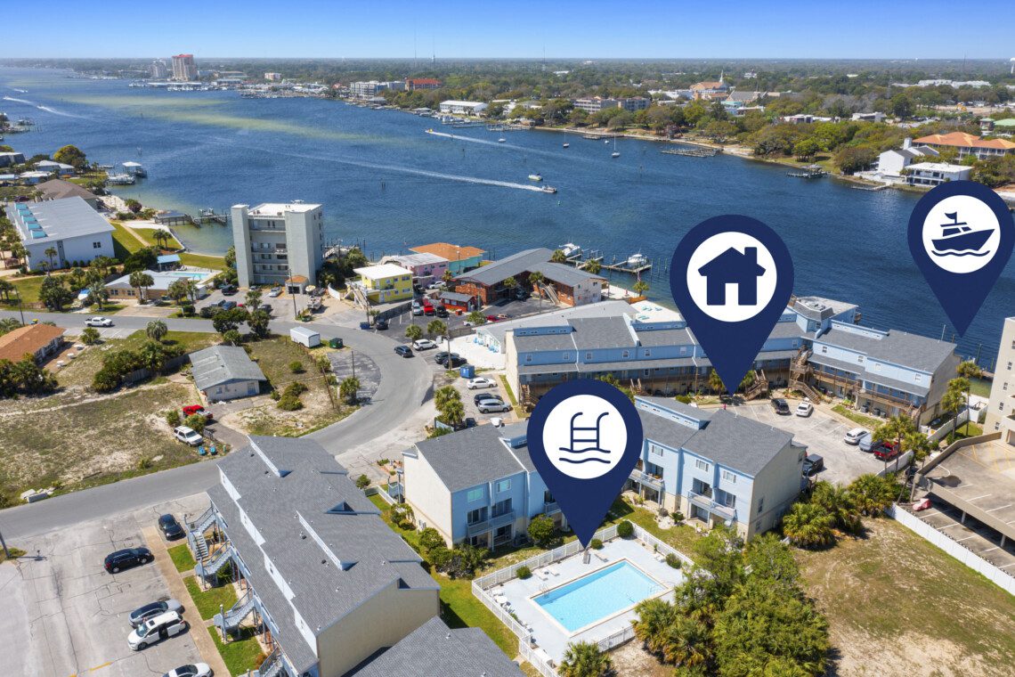 Commodore’s Landing is a gated waterfront community on Okaloosa Island, known for its peaceful vibe and fantastic access to the Santa Rosa Sound. Amenities include: