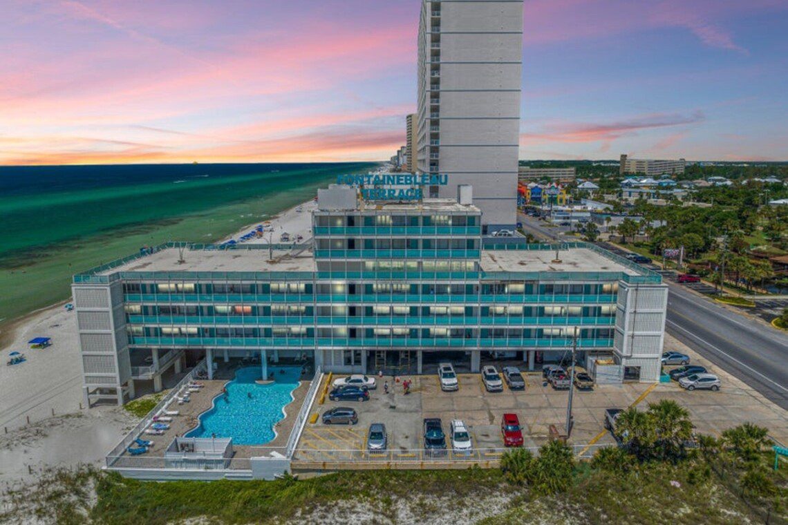 Fontainebleu Terrace has an awesome gulf front pool that is partially covered, providing a cool reprieve from the sun. The condominium is located in central PCB, within walking distance to Hidden Lagoon Super Race Track, and a short car ride to Pier Park.