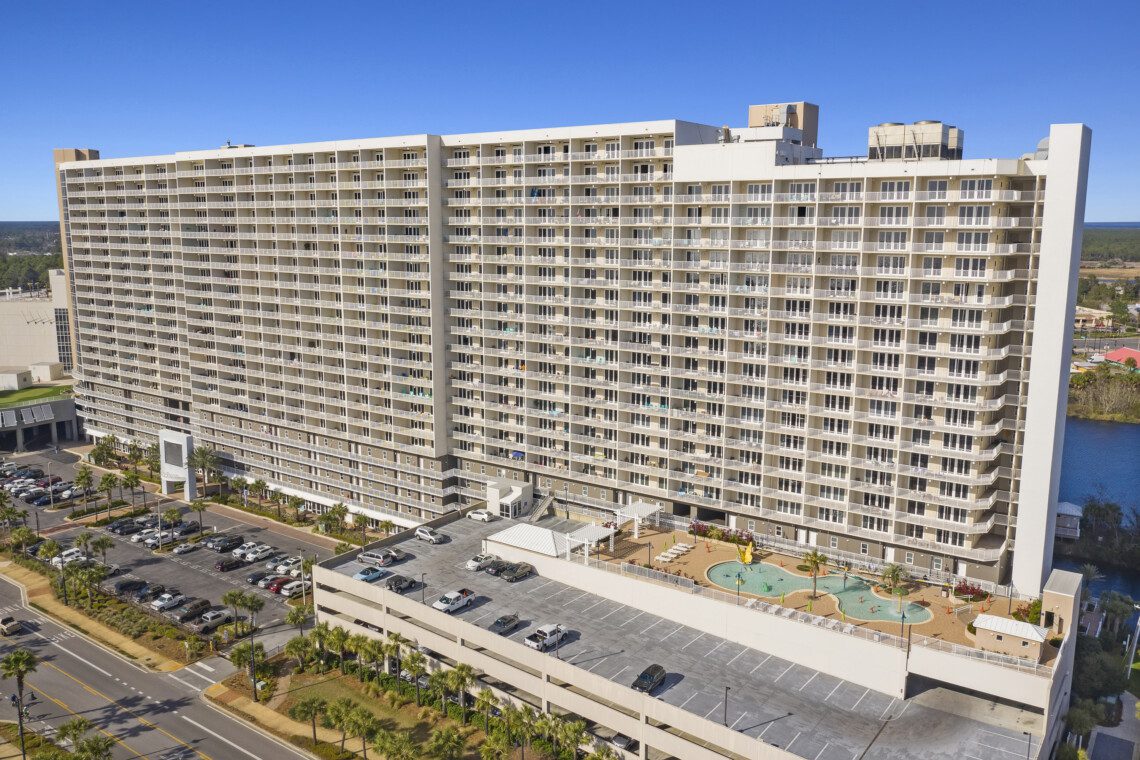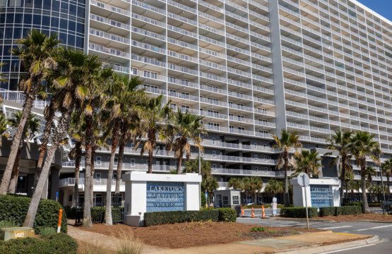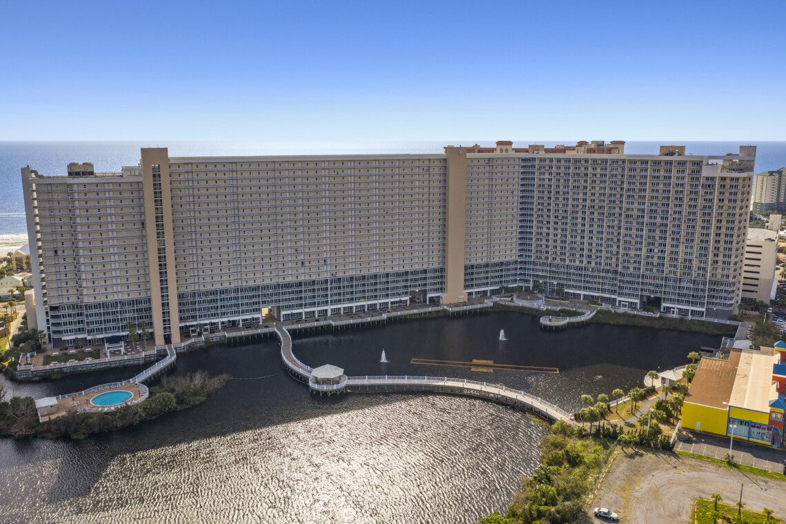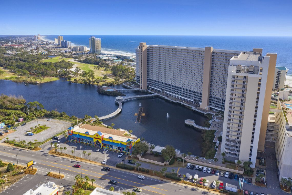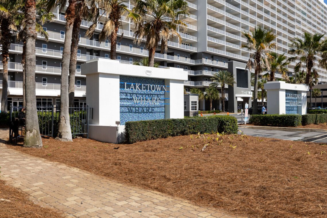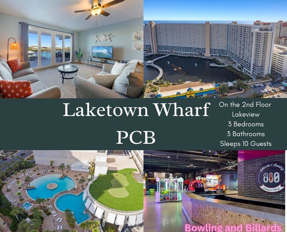 The Laketown Wharf Resort has many amenities that will be enjoyed by everyone. There is private beach access located across the street, next to Pineapple Willy’s. There are several public beach accesses across from the eastern portion of the resort. Laketown has five resort style pools, including a seasonally-heated, rooftop pool and childrens’ pool area. On the 3rd floor you will find the two-story fitness center and the putting green with fantastic views of the gulf. To the north side of the property, you will find 52,000 sqft. of lakefront boardwalk where you can watch the nightly fountain-lightshow. On the ground level, you will find various dining and shopping opportunities. Also, the resort is centrally located with countless amenities and attractions located around South Thomas Drive and Front Beach Road.