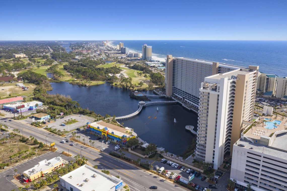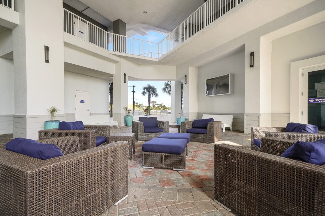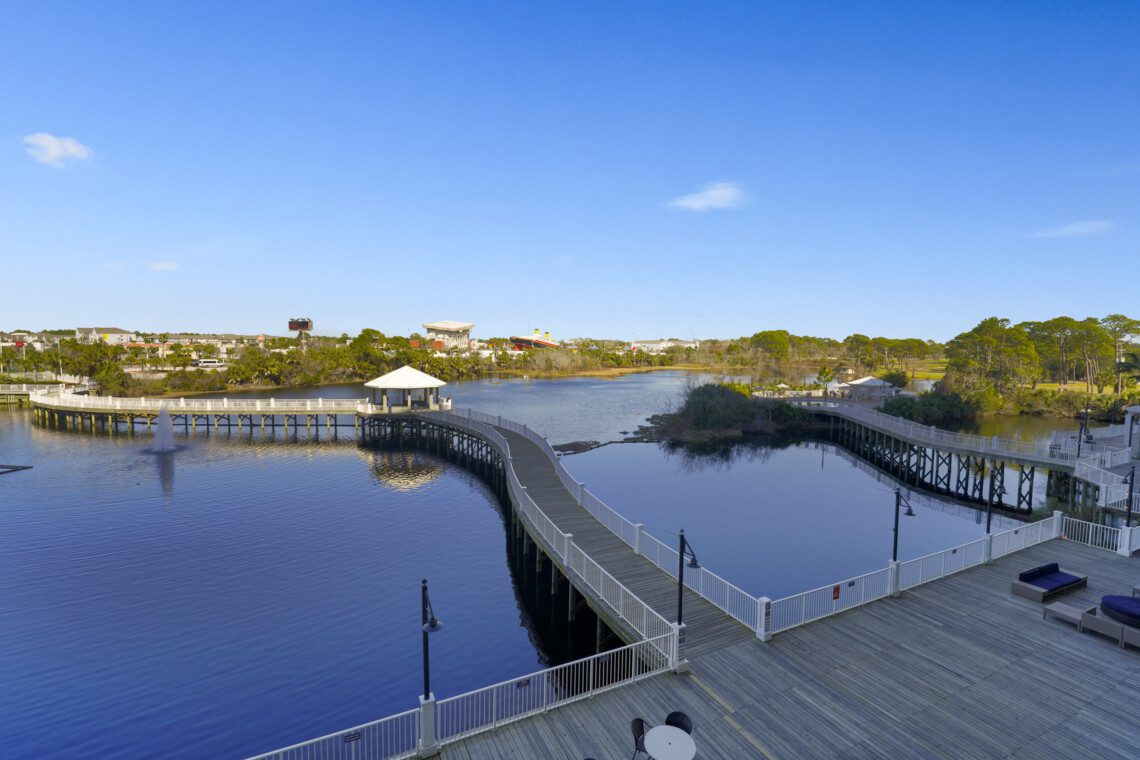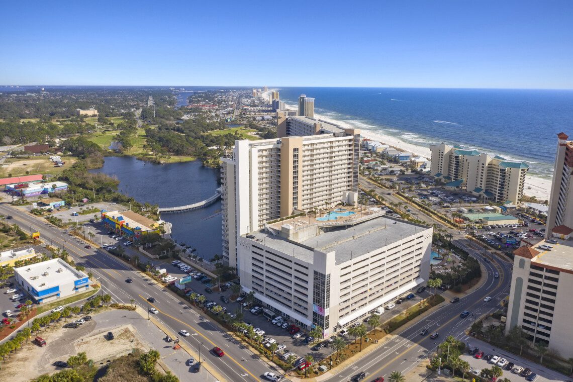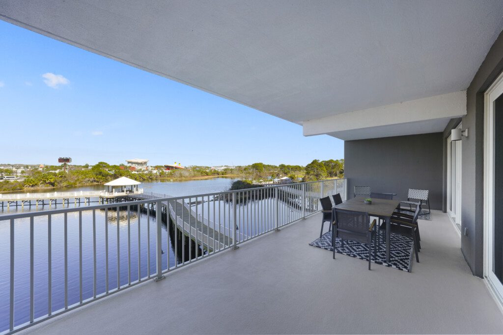 The Laketown Wharf Resort has many amenities that will be enjoyed by everyone. There is private beach access located across the street, next to Pineapple Willy’s. There are several public beach accesses across from the eastern portion of the resort. Laketown has five resort style pools, including a seasonally-heated, rooftop pool and childrens’ pool area. On the 3rd floor you will find the two-story fitness center and the putting green with fantastic views of the gulf. To the north side of the property, you will find 52,000 sqft. of lakefront boardwalk where you can watch the nightly fountain-lightshow. On the ground level, you will find various dining and shopping opportunities. Also, the resort is centrally located with countless amenities and attractions located around South Thomas Drive and Front Beach Road.