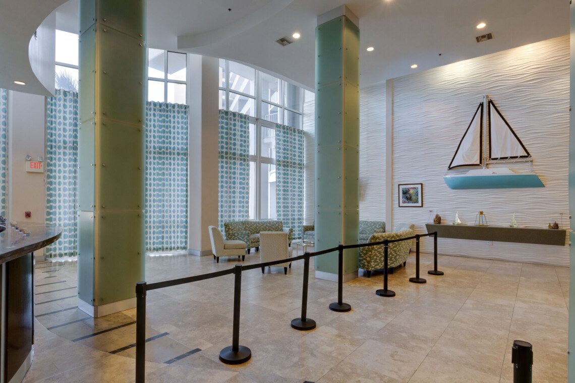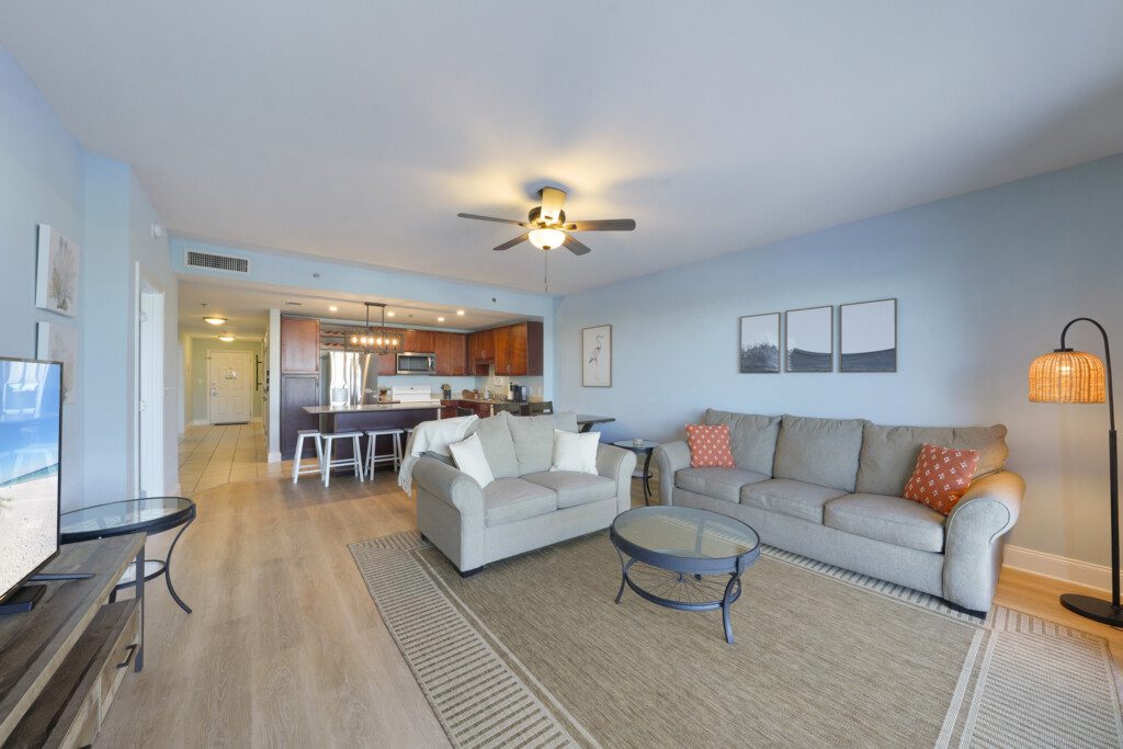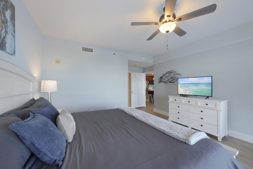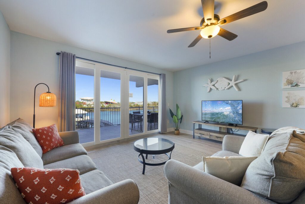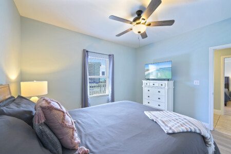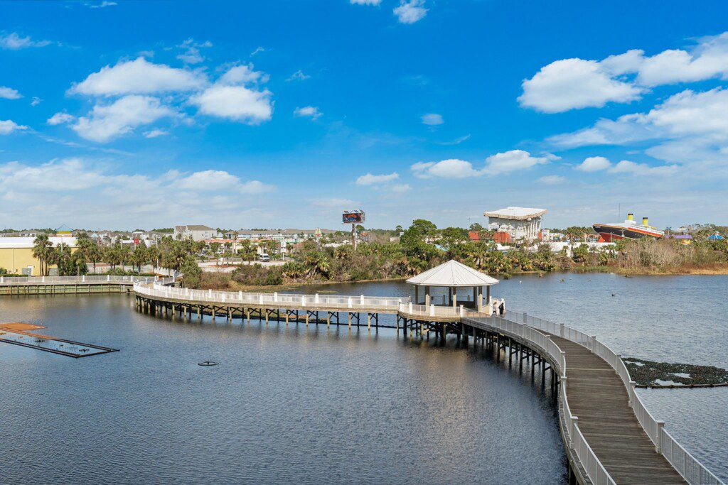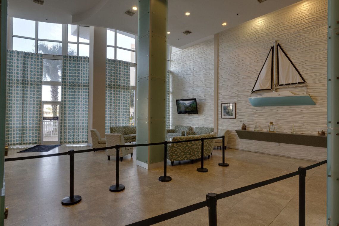 The Laketown Wharf Resort has many amenities that will be enjoyed by everyone. There is private beach access located across the street, next to Pineapple Willy’s. There are several public beach accesses across from the eastern portion of the resort. Laketown has five resort style pools, including a seasonally-heated, rooftop pool and childrens’ pool area. On the 3rd floor you will find the two-story fitness center and the putting green with fantastic views of the gulf. To the north side of the property, you will find 52,000 sqft. of lakefront boardwalk where you can watch the nightly fountain-lightshow. On the ground level, you will find various dining and shopping opportunities. Also, the resort is centrally located with countless amenities and attractions located around South Thomas Drive and Front Beach Road.