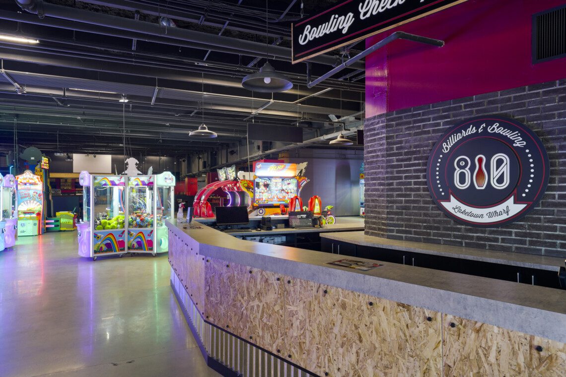 -810 Bowling and Billiards bowling alley and arcade in the same building, and within walking distance.