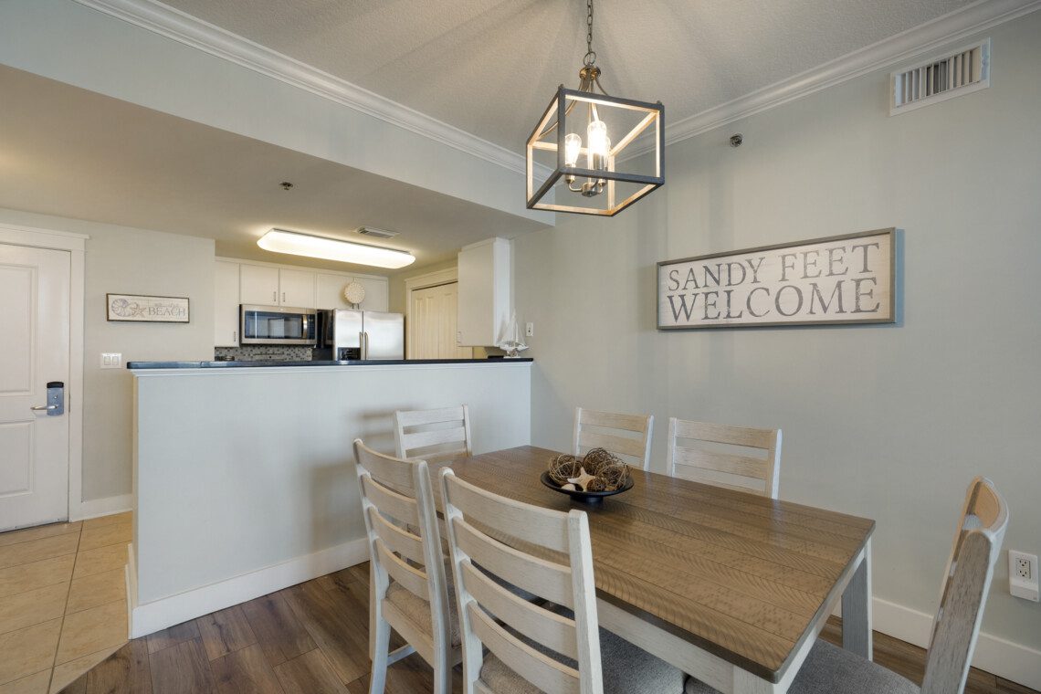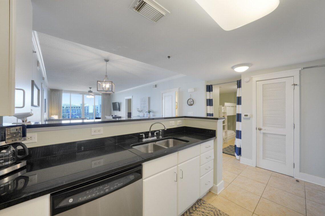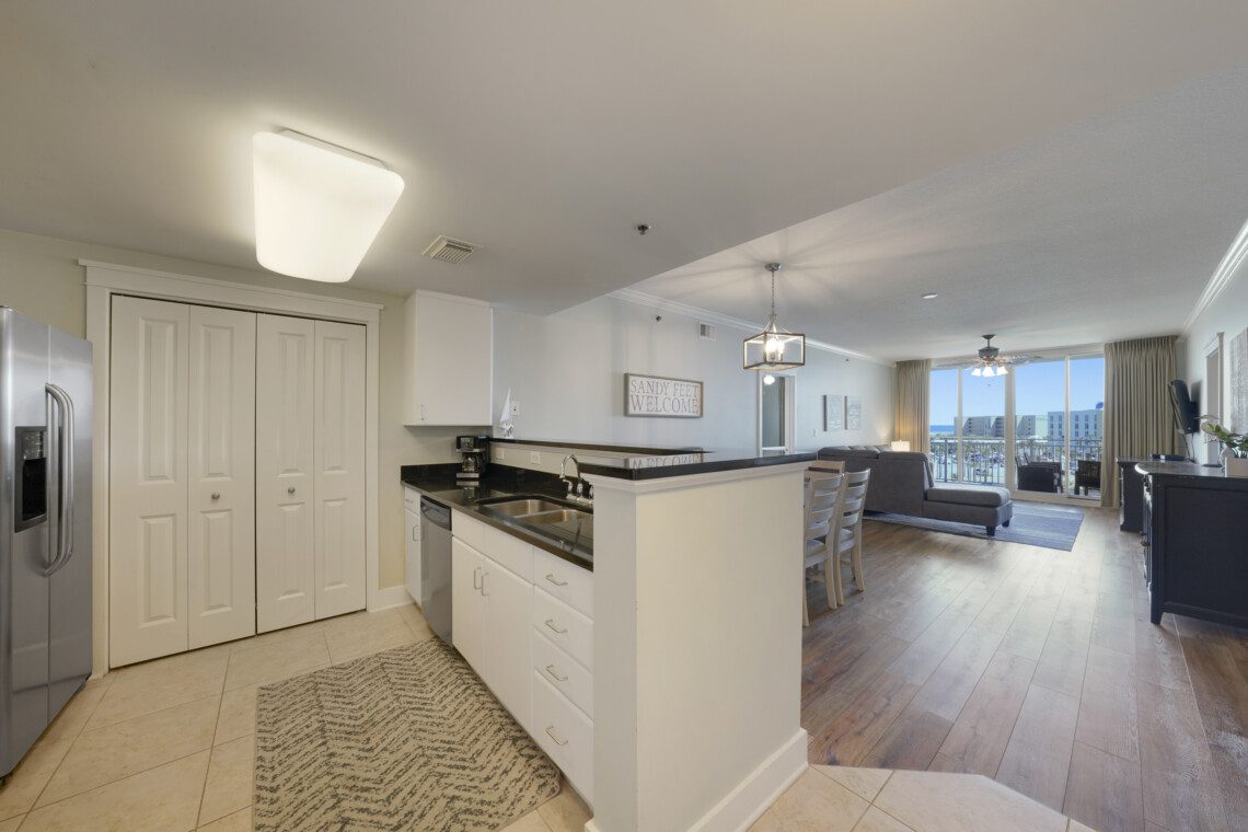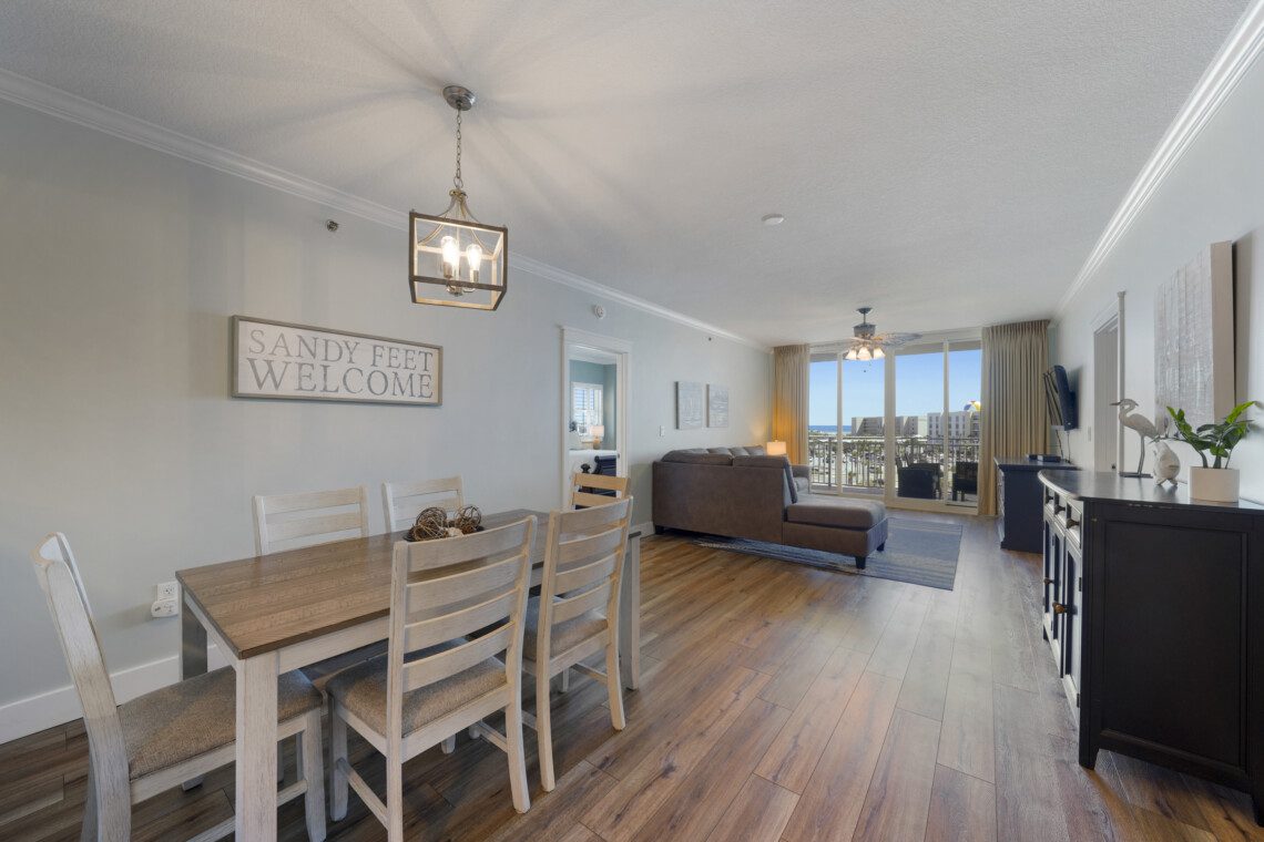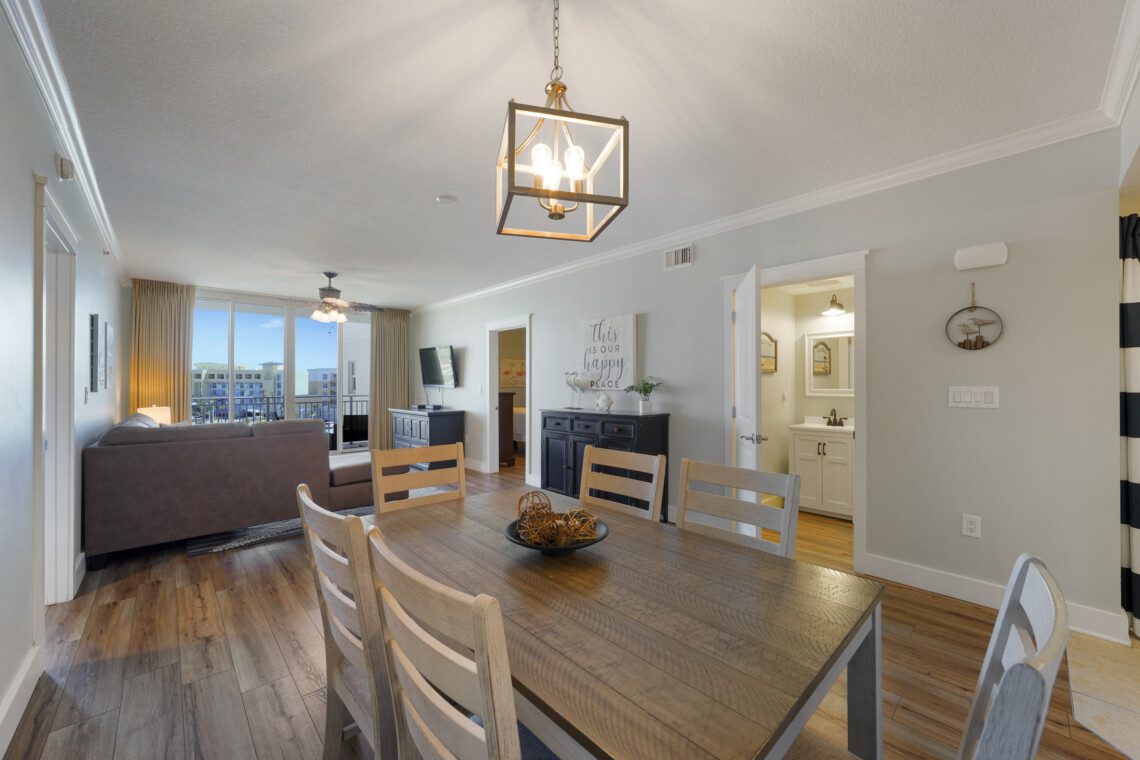 Welcome to Waterscape unit A533, a two bedroom with 2.5 bath condo located on the fifth floor. This condo is designed with modern coastal decor, and the floor plan was laid out with comfort in mind. Each bedroom has an ensuite bathroom, and the bunk alcove has use of the half bath nearby. The floor-to-ceiling store front windows pour natural light into the living space. The balcony offers partial views of the Gulf of Mexico and Choctawhatchee Bay. Oh, and there’s a waterpark in the backyard!